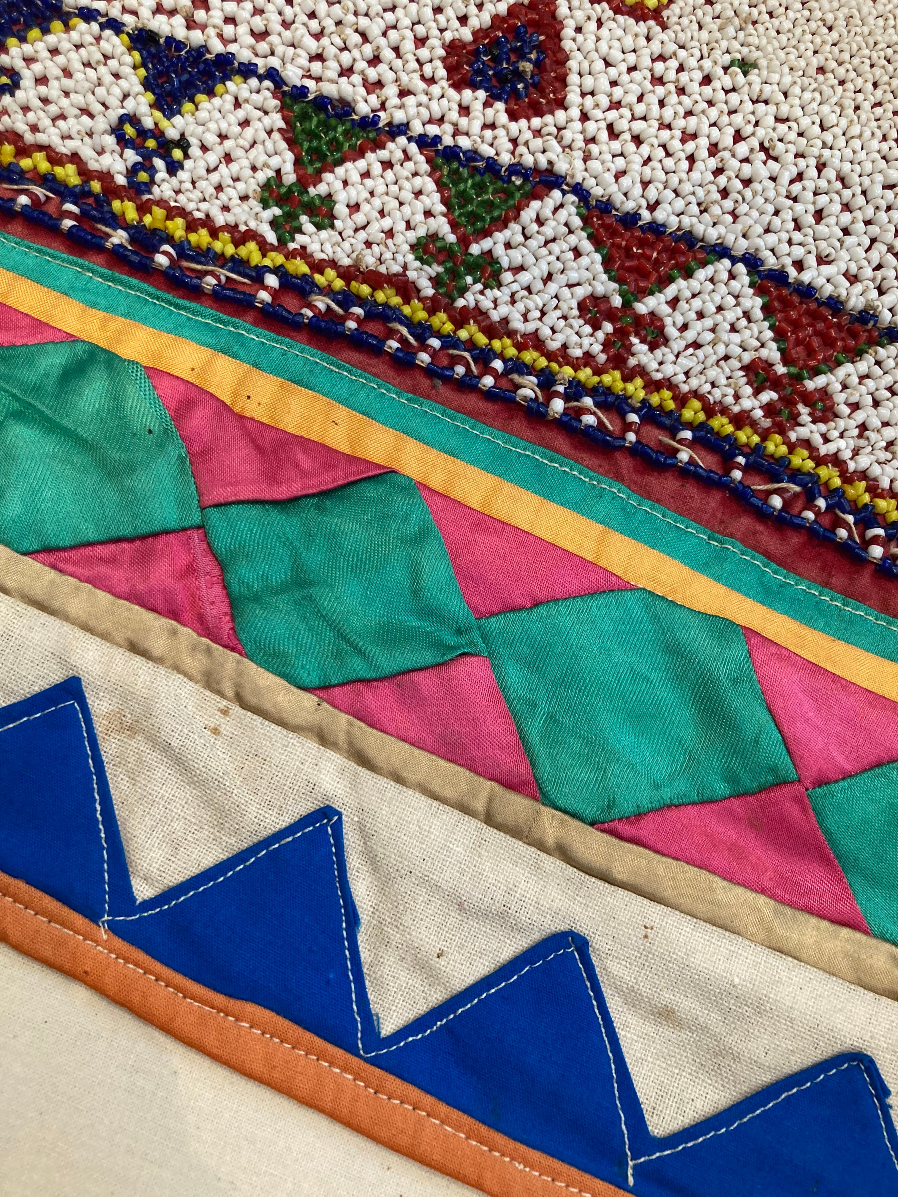 とても細かいビーズの刺繍がほどこされたタペストリーです。